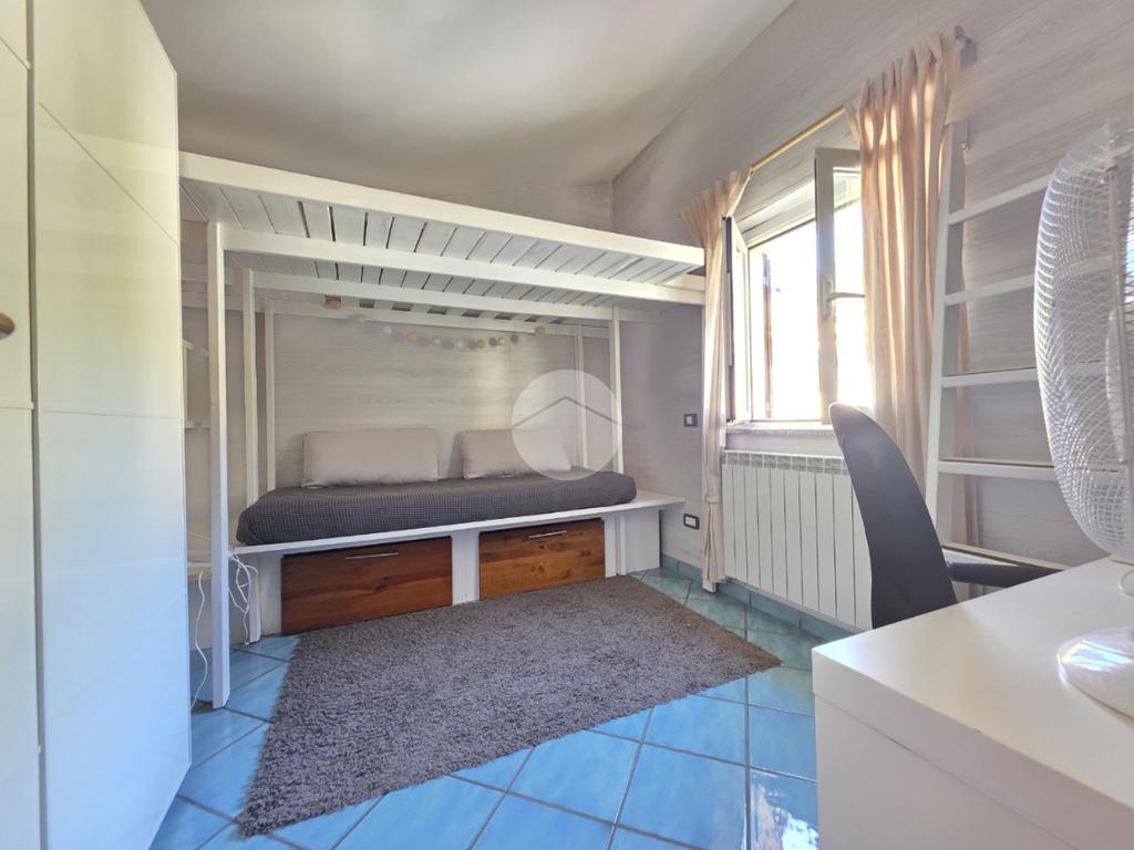 Una scala interna porta alla zona notte mansardata, alta e ariosa, dove spicca una camera matrimoniale con finestre panoramiche. Sono presenti altre due camere da letto, seconodo bagno con doccia e un ulteriore ripostiglio.
